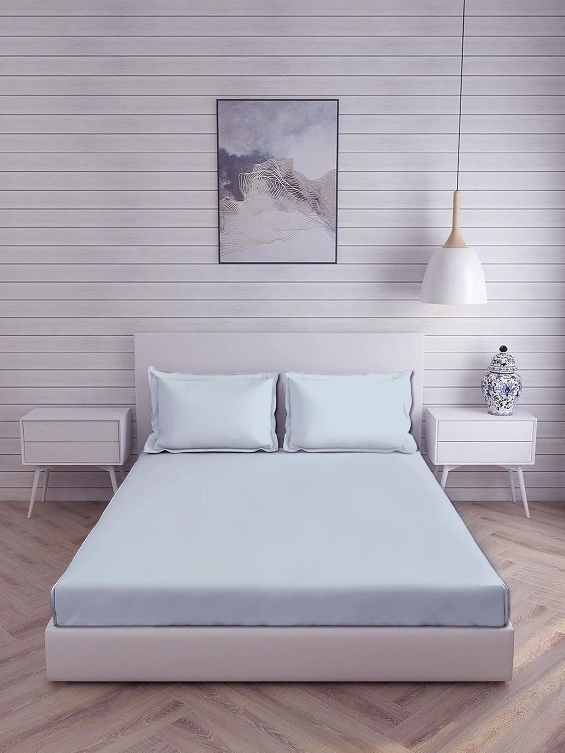 Trance Home Linen 300 TC Pure 100% Cotton | Soft Skin Safe | Breathable King Size Flat Bedsheets | All Season Soft Fabric | Double Bedsheet Set with 2 Pillow Covers (108×108 Inches)